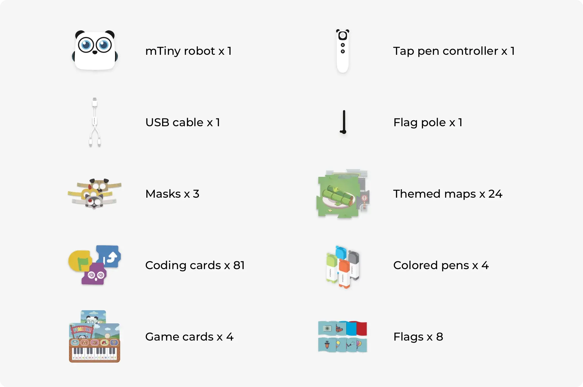 Makeblock mTiny Smart Interactive Screen free Coding Robot Kit Computational Thinking Learning. Easy to use and combined with a range of coding games for different levels to discover and learn. Fusion of Cross-Curricular Content. Exposing different concepts and designed with modern educational philosophies to find curiosity for knowledge. Imagination and Interaction Building. With multiple playing and learning approaches to explore, design, act and play with mTiny and friends. Loveable Looks Changing. mTiny has changeable looks with 10+ facial expressions, 300+ sound effects.